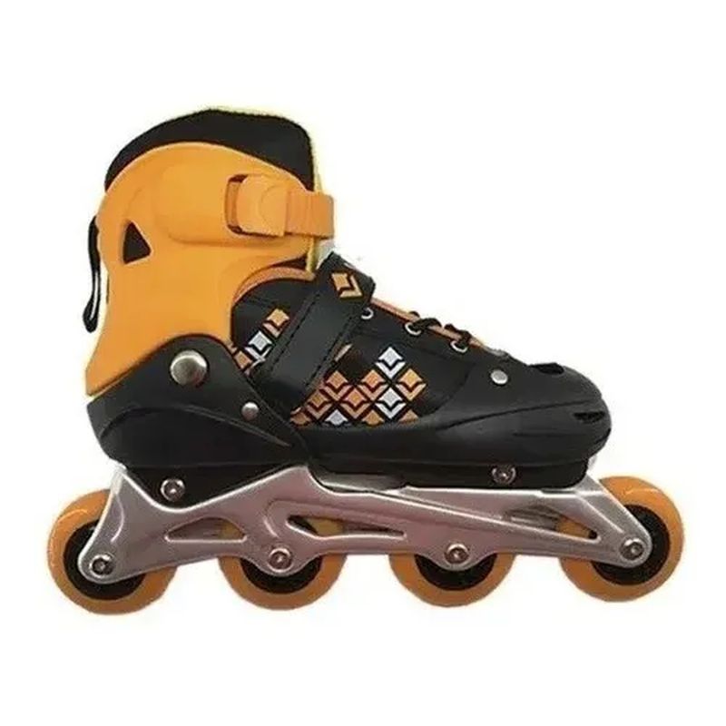 Explore os melhores caminhos e garanta muita diversão com o Patins In Line Vollo Laranja e Preto Pequeno. Indicado para crianças, jovens e adultos que desejam ter um patins resistente e confortável para a prática de lazer, como passeios em parques, condomínios, orlas e outros. Por conter estrutura de plástico reforçado com chassis em alumínio, o patins suporta até 100 kg, possui rolamento abec5, o que proporciona um deslizar muito mais suave mesmo em maiores velocidades. Além disso, sua bota ajustável com revestimento interno de espuma, fechamento em velcro, fivela de plástico e cadarço, garante a melhor fixação aos pés e segurança durante toda a patinação.