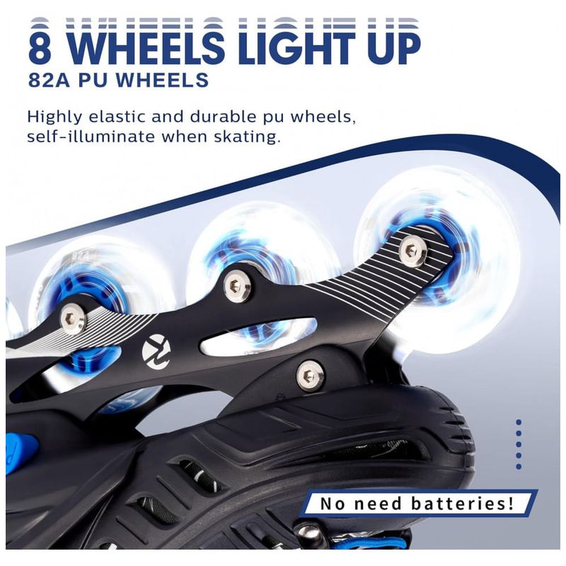 Patins Regulável e Ajustável para Crianças com Rodas Iluminadas, Tam BR 33 a 37, Kuxuan, Azul