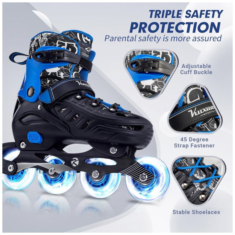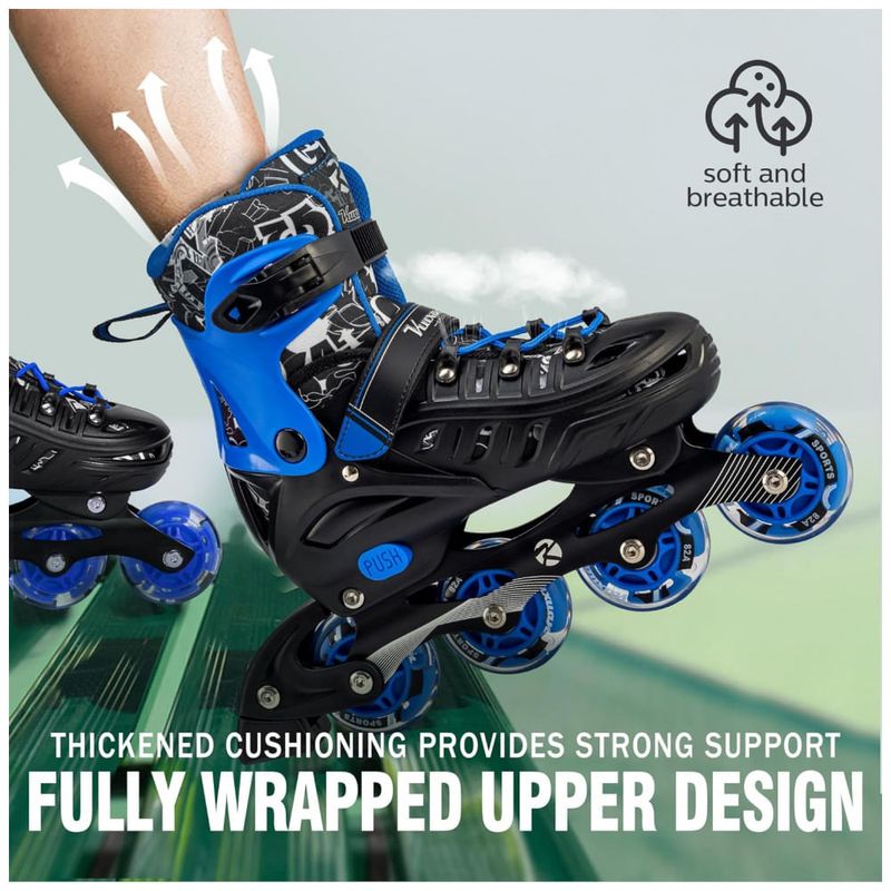 Conforto e Segurança: A estrutura do patins foi projetada para proporcionar conforto máximo e garantir a segurança da criança, evitando possíveis torções nos tornozelos e pés.