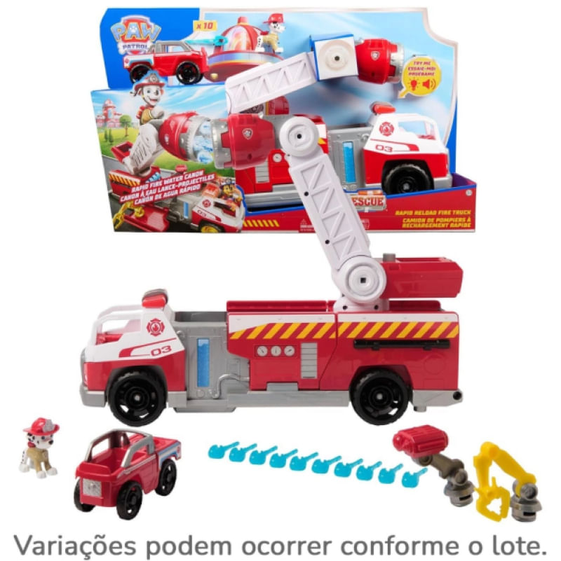 O Caminhão de Bombeiro Deluxe Fire Rescue da Patrulha Canina traz a emoção das missões de resgate diretamente para a casa das crianças. Inspirado em Patrulha Canina: Fire Rescue, o caminhão permite que os pequenos entrem em ação com Marshall, o destemido bombeiro da patrulha. Equipado com canhão de água de brinquedo, projetéis com reload rápido e guindaste móvel, o caminhão é perfeito para missões desafiadoras para salvar o dia na Baía da Aventura. O brinquedo conta com luz e som, além de incluir uma figura, um mini veículo, 10 projetéis e acessórios. Ideal para recriar as emocionantes aventuras da série, o brinquedo estimula a imaginação e o trabalho em equipe, ensinando a importância de ajudar os outros enquanto se divertem salvando a cidade. REGISTRO 004064/2025 BRI-1