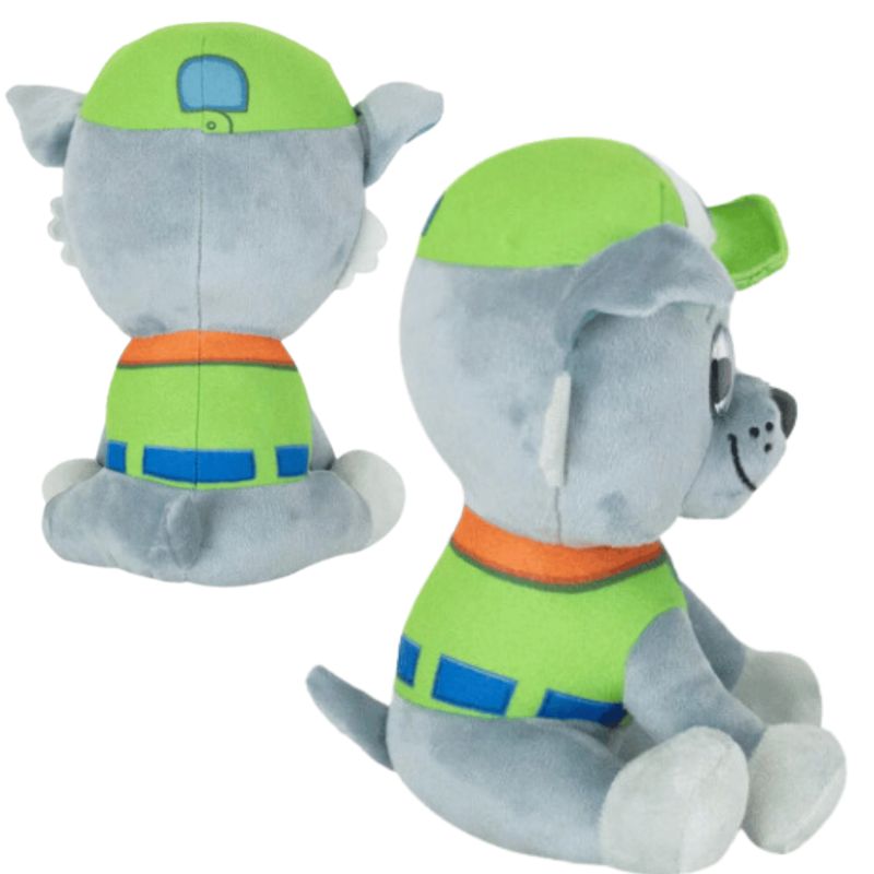 Pelúcia macia de 22cm da Patrulha Canina. É perfeita para levar a qualquer lugar e criar novas aventuras mega divertidas. A Baia da Aventura precisa de você. Parta agora para o resgate com Rocky e sua turma.