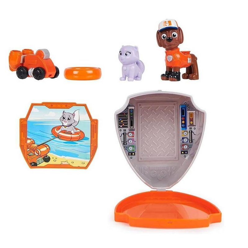 Inspirada na animação Patrulha Canina, a figura do Zuma vem com uniforme especial para grandes aventuras de resgate. O conjunto acompanha um animal de estimação, ampliando as possibilidades de histórias e tornando a brincadeira ainda mais envolvente. Além disso, conta com dois acessórios temáticos que complementam o cenário e estimulam a criatividade na criação de novas missões.