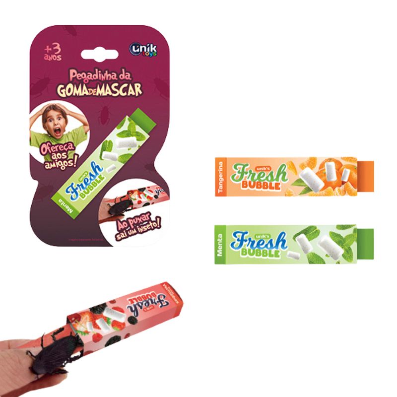 Pegadinha Goma de Mascar Sabor Tangerina - Unik Informações do Produto: Pegadinha da goma de mascar, ao puxar a goma, sai um inseto! (NÃO É CHICLETE DE VERDADE). Itens Inclusos: 1 Pegadinha. Recomendado: 3 anos+. Alimentação: Não. Material composição: Plástico. Certificação Segurança: Inmetro CE-BRI/INNAC 00852-01A NM 300/202 Segurança do Brinquedo. Garantia do Fabricante: 03 meses contra defeitos de fabricação. Aviso: Imagens meramente ilustrativas. As cores podem variar entre as imagens mostradas acima e o produto.