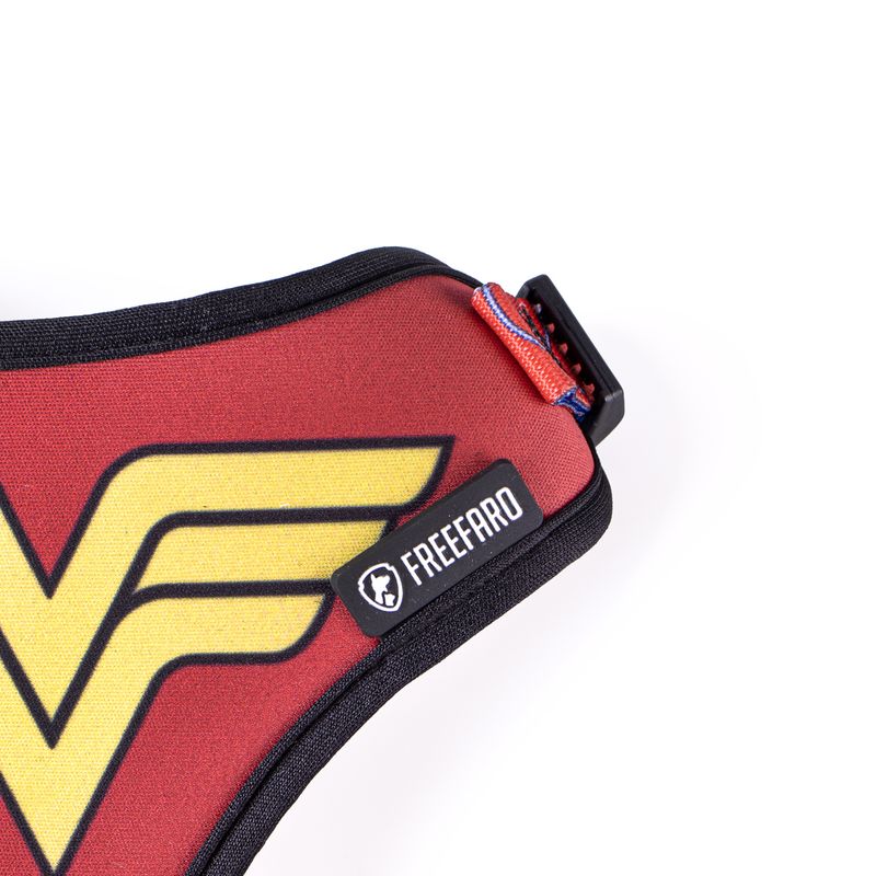 Produto original e licenciado pela Warner Bros. Consumer Products. Feito em Neoprene, modela-se perfeitamente ao corpo do pet; É o peitoral mais seguro, pois prende-se ao corpo do animal em 2 pontos (pescoço e cintura); Tira em Poliéster super macia e resistente, é a mesma utilizada em cintos de segurança;