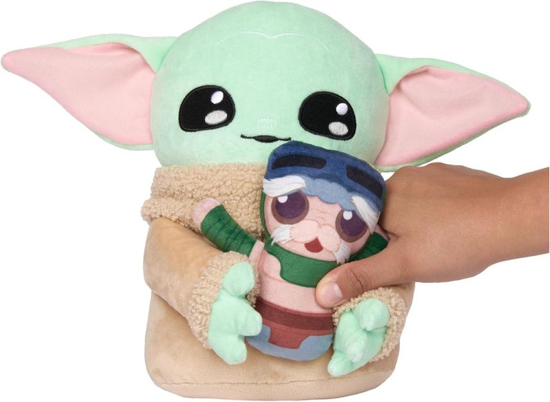 -Você poderá reviver a divertida cena "Bebê mau, não apertar", da terceira temporada de Mandalorian, com este brinquedo de pelúcia falante de Grogu e Anzellianos!