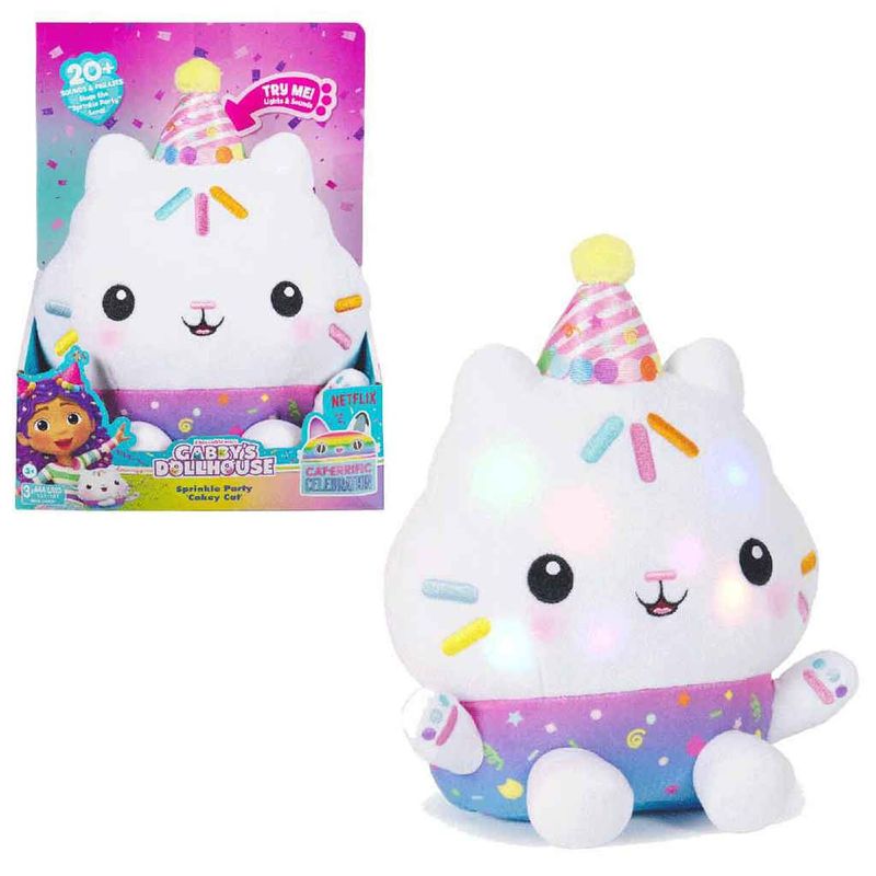 A nova linha de pelúcia da Gabbys chegou, e esta mais fofa do que nunca, de vida a pelúcia Cakey e se divirta sem fim com a nova pelúcia interativa! PELUCIA INTERATIVA: Cakey vem com, luzes multicoloridas além de cantar “Sprinkle Party”. CHAPÉU INTERATIVO: pressione o chapéu para interagir Crie memorias únicas e incríveis com a nova pelúcia interativa Cakey, se divirta com suas luzes, sons e sua musica, faça a melhor festa com a pelúcia Cakey!"