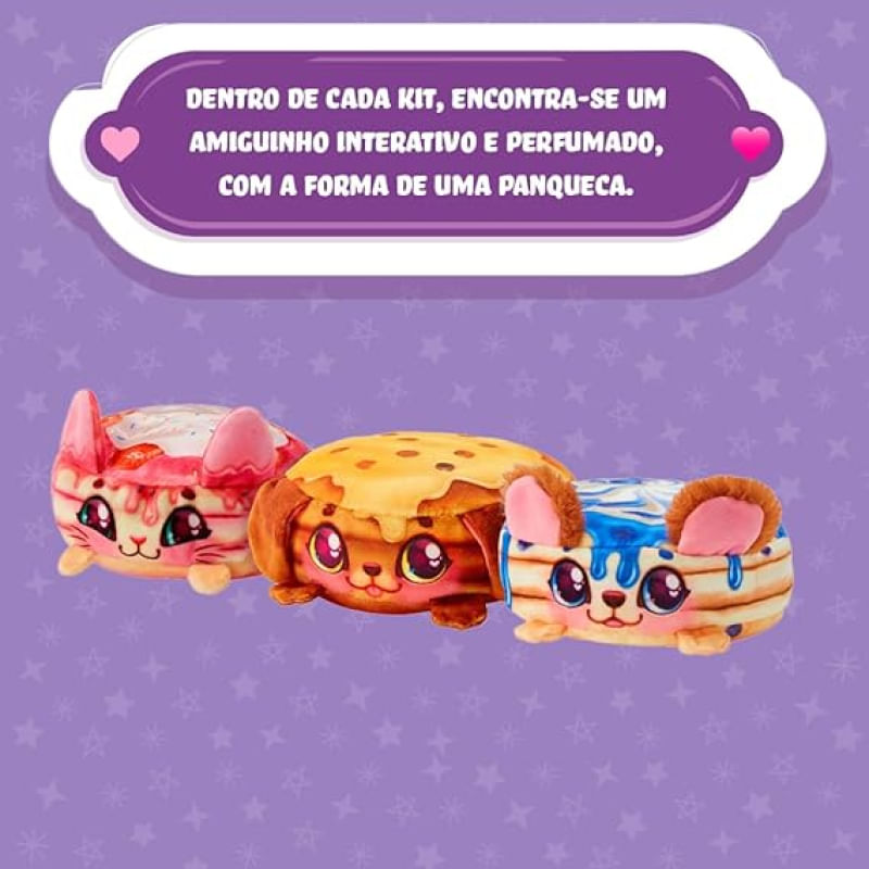 Cada kit contém um amiguinho interativo e perfumado em forma de panqueca.