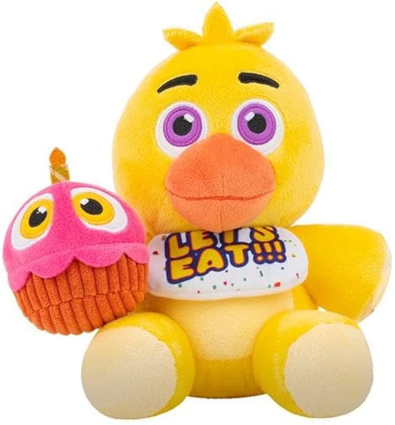 Pelúcia Chica Five Nights at Freddy’s 20 cm, boneco macio inspirado no personagem do famoso game. Ideal para fãs, colecionadores e decoração gamer.