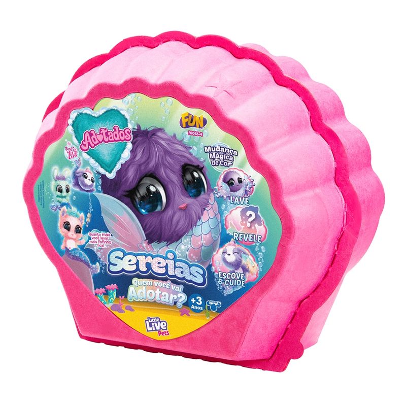 Me deixe ser seu amigo peludinho para sempre. O Adotados Sereia chegou para conquistar de vez seu coração. Assim que você pegar o seu novo Adotados, vai ver apenas uma bolinha de pelos. Mas, após um bom banho com direito a muito shampoo e condicionador, pentear e secar seu novo amigo com o secador é que você vai saber quem ele realmente é. Pode ser um coelho sereia, cachorro sereia ou um gato sereia. Seja quem for, ele vai te amar e ser seu amigo para sempre. Além do bichinho de pelúcia, o brinquedo acompanha um pente, uma tiara e certificado de adoção.