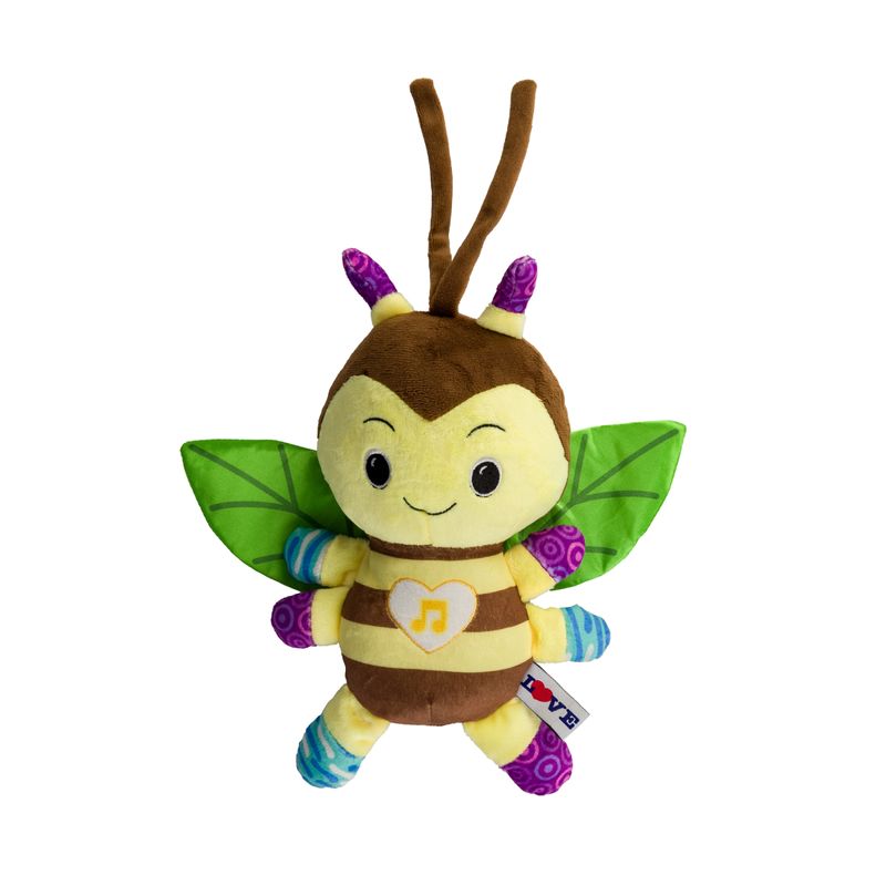 A abelhinha musical LOVE toca 3 melodias suaves e calmantes e ruído branco, ajudando a acalmar o bebê e criar uma atmosfera relaxante para a hora do sono. Com iluminação noturna delicada, uma luz suave embutida na barriguinha e caixa musical removível. Pode ser lavado na máquina com os devidos cuidados. Produzido com pelúcia macia de alta qualidade, ideal para o bebê abraçar e se sentir confortável em todos os momentos. Um visual adorável perfeito para meninas, além de combinar com qualquer decoração de quarto infantil.