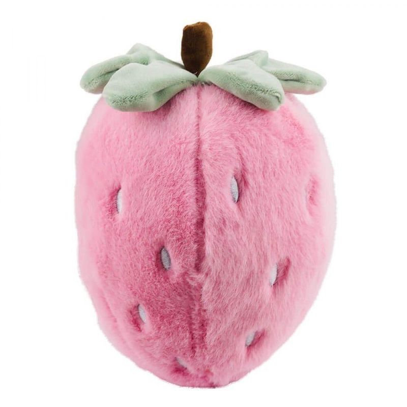 Pelúcia no formato de um morango na cor rosa com 20 cm de altura. Material: poliéster; Enchimento: fibra de poliéster; Produto certificado por Órgão acreditado pela CGCRE do INMETRO