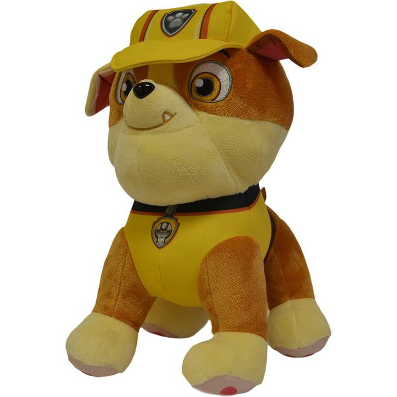 A Pelúcia Rubble é um buldogue inglês adorável e muito simpático, que sabe tudo sobre skates e snowboards. Ele dirige um trator amarelo, com brocas e várias outras ferramentas de construção.