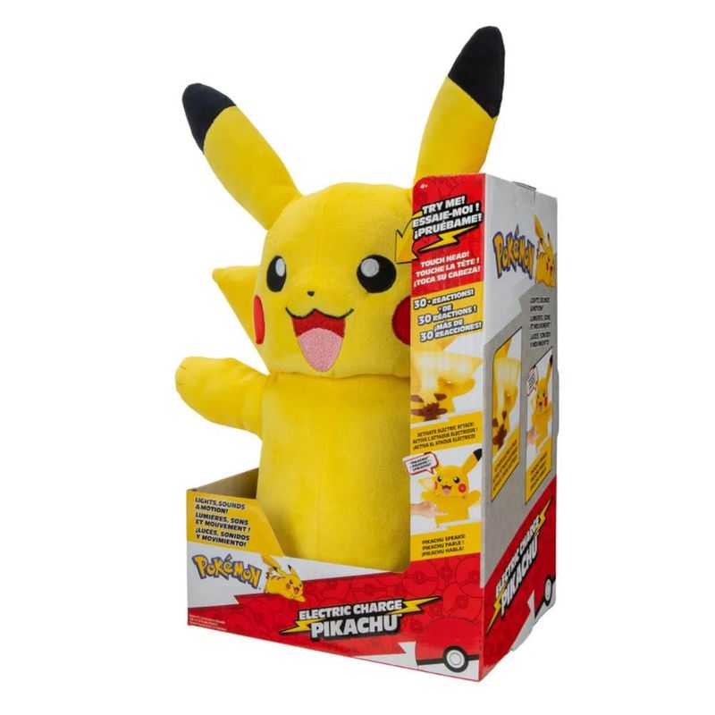 Embalagem: Conteúdo da embalagem: 1 Pelúcia de Luxo Pikachu de 30cm com Luz e Som