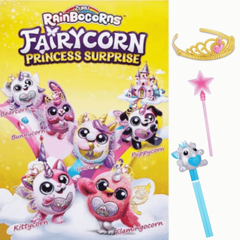 Rainbocorns Fada Surpresa são pelúcias adoráveis para colecionar! Ela vem com asas mágicas de fadas para você usar e uma tiara de joias para você brilhar ainda mais.