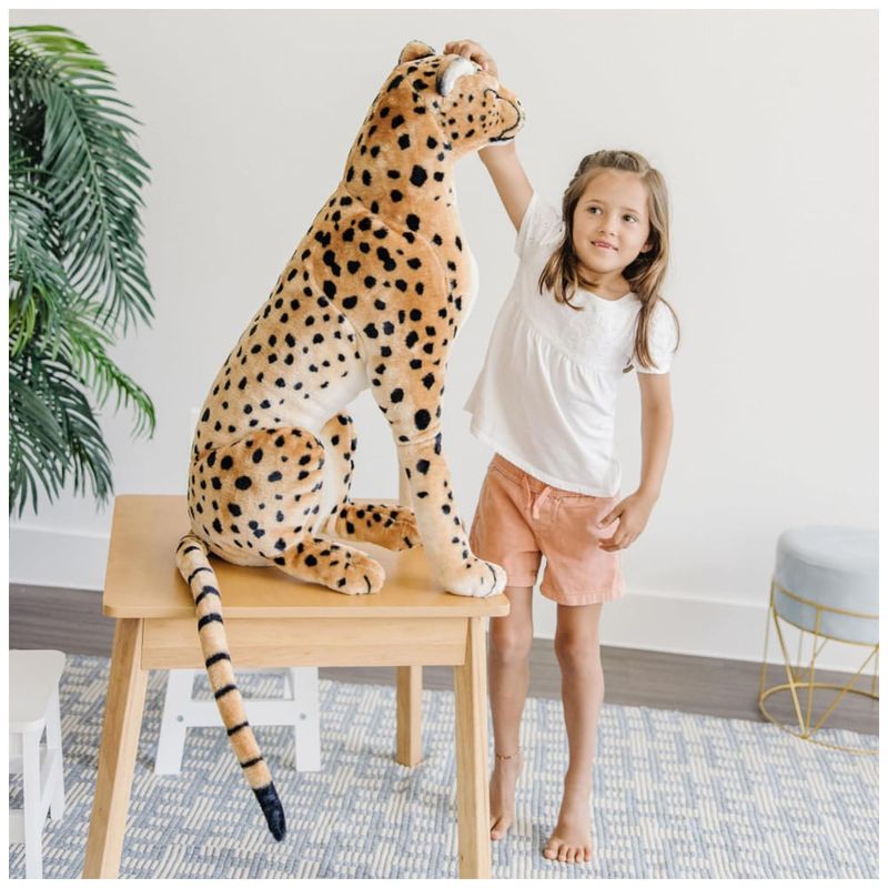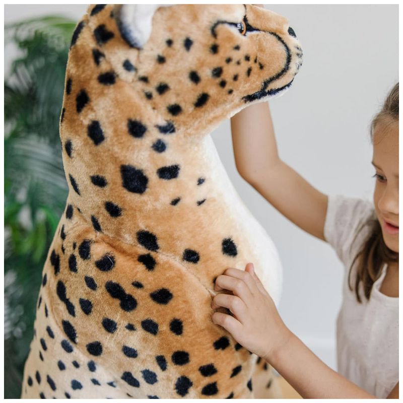 Esta chita de pelúcia é um brinquedo realista e encantador, com lindas marcações e detalhes realistas no rosto. Com mais de 1,22 metros da ponta do nariz à ponta da cauda, ela é um companheiro marcante para brincadeiras ou detalhes de decoração. É um ótimo presente para crianças a partir de 3 anos, para brincar sem tela, e pode ser combinado com o Melissa Doug Giant Stuffed Tiger para uma experiência de jogo ainda mais envolvente.