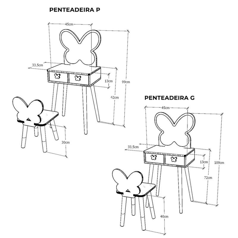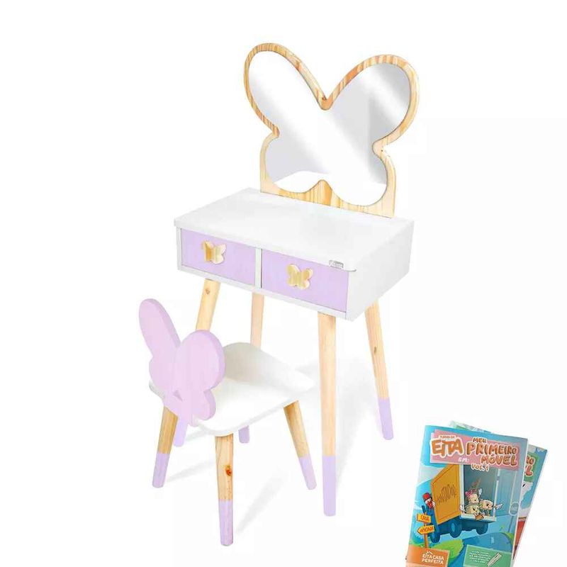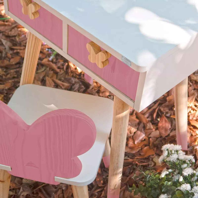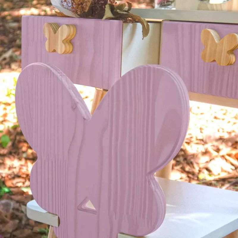 E o melhor de tudo: ela vem acompanhada de uma cadeirinha charmosa, com o encosto no formato de borboleta, completando o conjunto com elegância e praticidade.