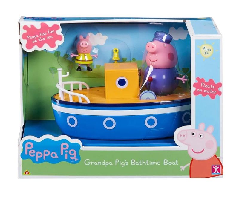 Para se divertir com a Peppa e o George no barco do Vovô Pig! Ele flutua na água, deixando a brincadeira ainda mais divertida, os bracinhos dos bonecos podem ser movidos para frente e para trás com a ajuda da criança. O brinquedo não é recomendado para menores de 3 anos por conter partes pequenas que podem ser engolidas.