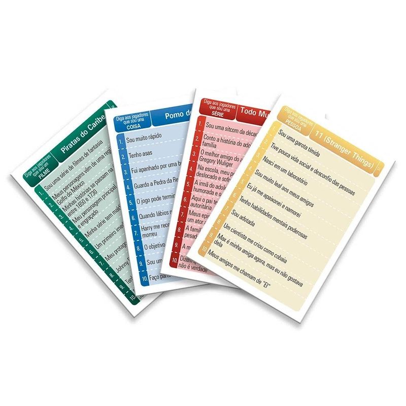 Perfil Express Filmes e Séries é a novidade de um dos maiores clássicos da Grow. Ele traz uma nova forma de jogar através de categorias inspiradas no streaming e nas telas de cinema! Cada cartela possui 10 dicas que valem até 10 pontos. A primeira dica é menos reveladora, e as seguintes, de maneira progressiva, aumentam mais as chances de acerto. Esta versão foi especialmente desenvolvida para ser jogada por duas pessoas ou equipes, sem a necessidade de um tabuleiro. Com um novo sistema de pontuação, o vencedor será aquele que fizer mais pontos durante cinco rodadas. Desafie alguém ou reúna a galera para aproveitar ao máximo o novo Perfil Express Filmes e Séries!