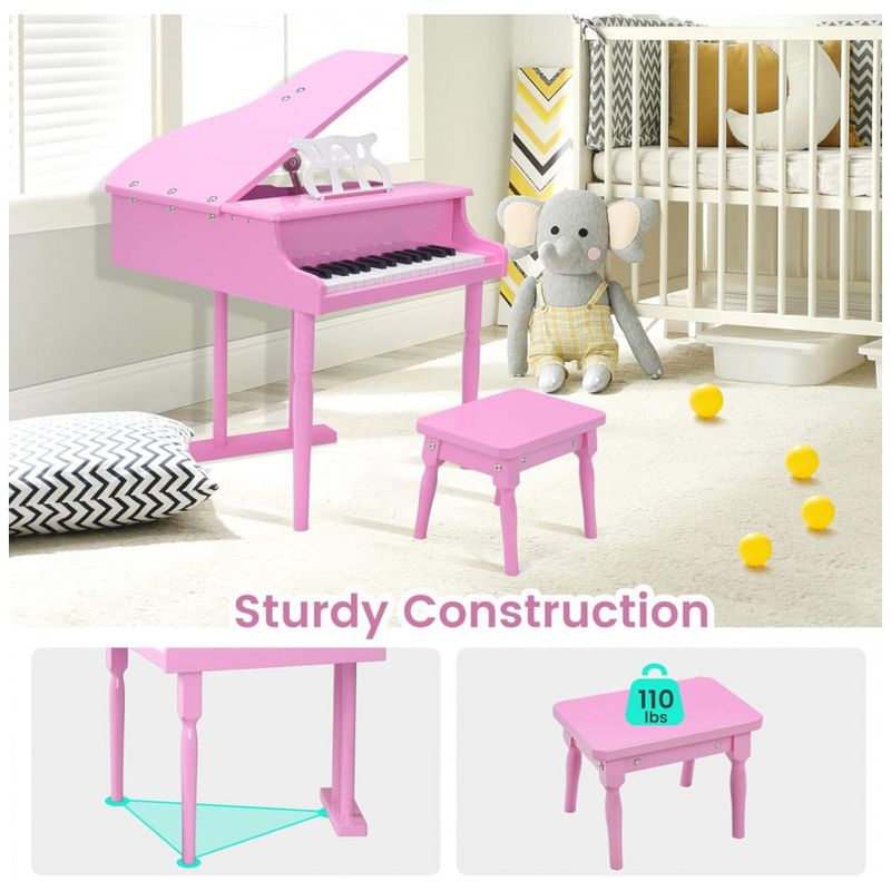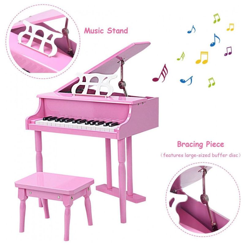 Ótimo instrumento musical educacional: O artesanato requintado confere a aparência clássica e o som agradável deste piano, que atrairá a atração das crianças à primeira vista. Graças à estante de partitura e ao banco confortável, as crianças podem desfrutar de uma experiência musical envolvente e brincar com este instrumento de teclado com facilidade.