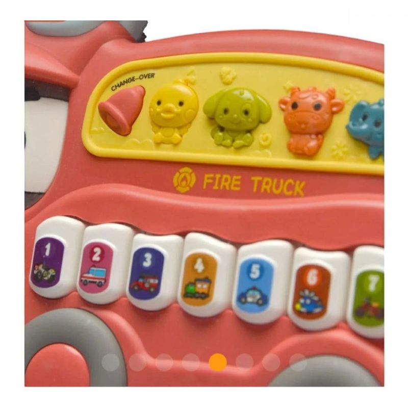 O Teclado Musical Bombeiro é um brinquedo interativo emitindo melodias e sons infantis, além de possuir botões de música e sons de animais.