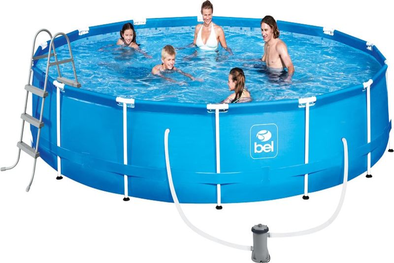 Com paredes laterais com espessura tripla de PVC e poliéster resistente e armação de metal resistente à ferrugem, a Piscina de Armação 13.000 Litros Bel é ideal para você passar momentos inesquecíveis no sol.