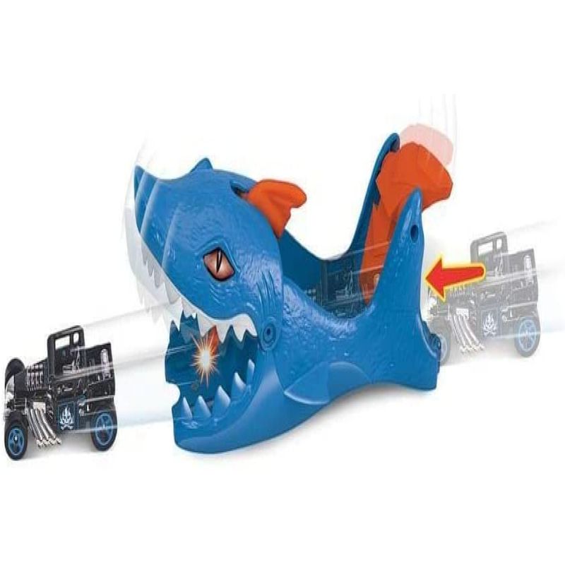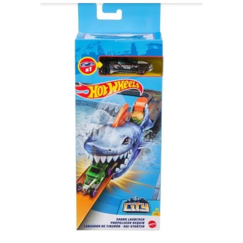 Pista de Percurso - Hot Wheels City - Lançadores Nemesis - Tubarão Os lançadores Hot Wheels® Dino e Hot Wheels® Tubarão trazem um t-rex e um tubarão na forma de incríveis lançadores e obstáculos do mundo Hot Wheels? City (vendidos separadamente). As crianças precisam lançar seus carros com a força certa ou correrão o risco de ficarem presas na boca das feras!