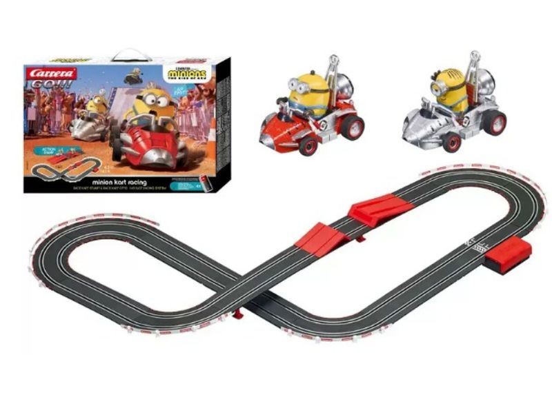 Os hilários Minions estão de volta, voando pelo seu Carrera GO!!! Circuito 'Minion Kart Racing'. Você e seus amigos podem se juntar à tripulação do caos amarelo para uma diversão selvagem e louca!Pedal-no-metal fora de casa!