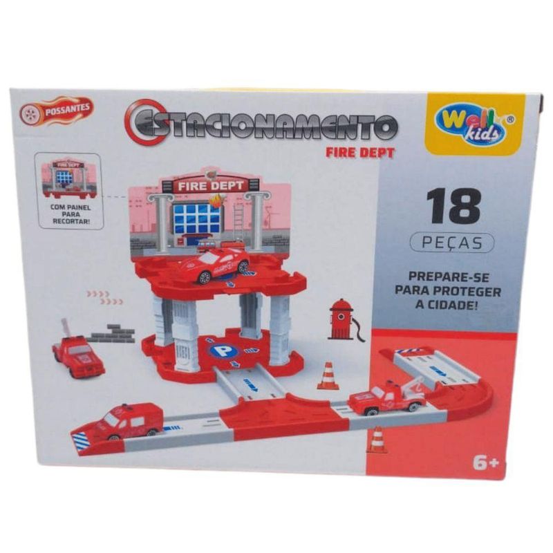 Pista Estacionamento Bombeiro C/ 18 Peças - Wellkids
