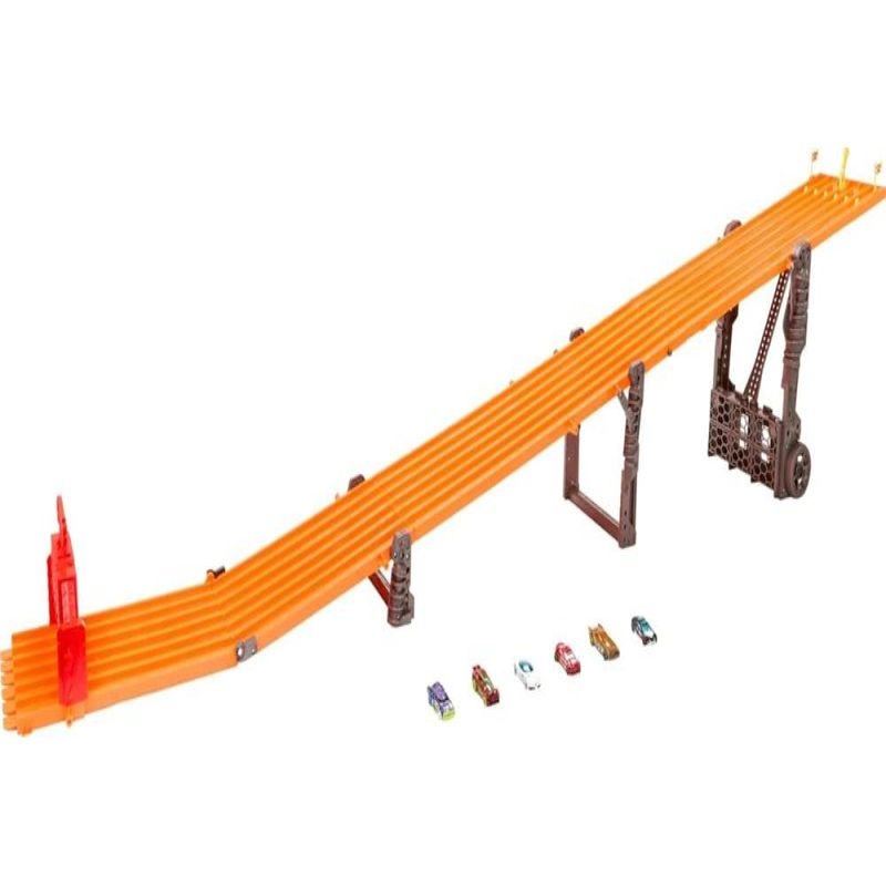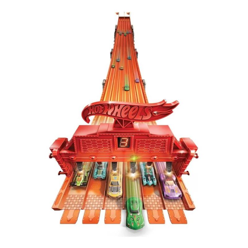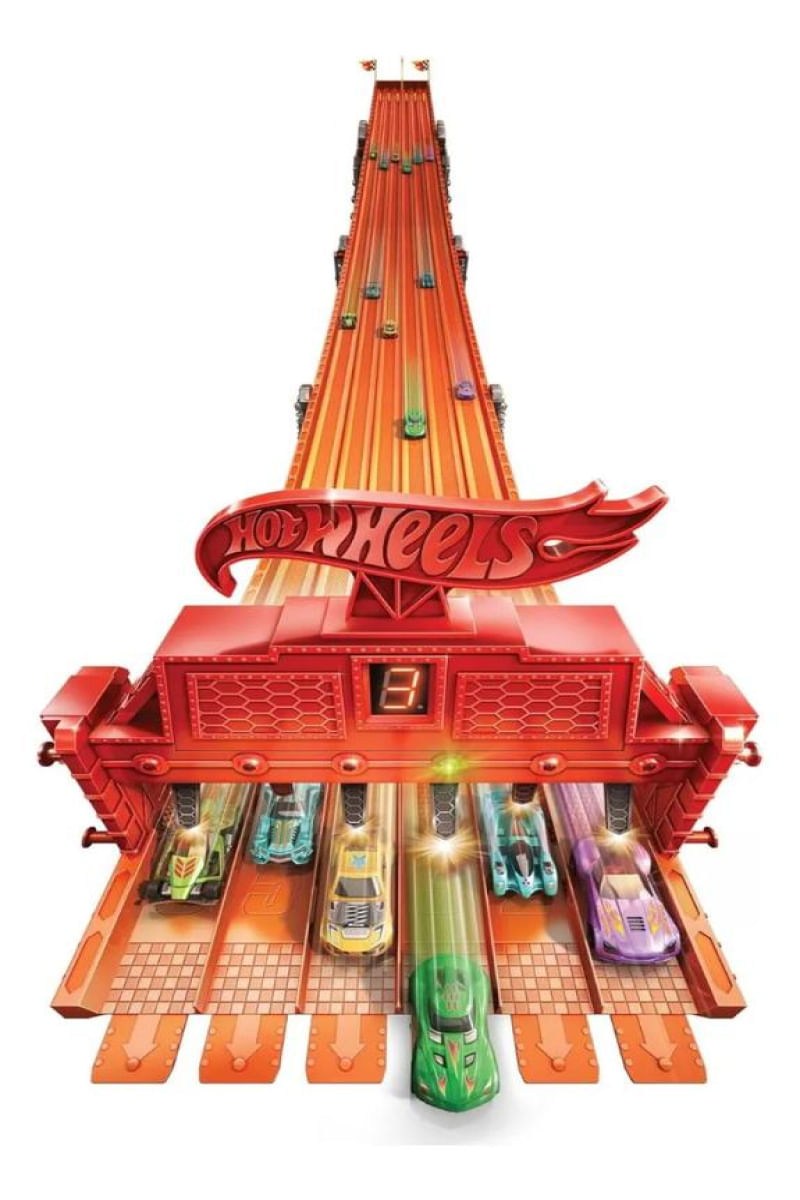 -O Hot Wheels Super Pista de 6 Faixas prepara o palco para corridas espetaculares de 6 carros ao longo de 2.43 metros de pista e conta com luzes e sons realistas! -Inclui 6 veículos Hot Wheels para começar a competição assim que saem da caixa. -Você pode alinhar os 6 carros na linha de partida e acionar a alavanca de largada justa para os ver correr em direção à linha de chegada. -O locutor anuncia o vencedor enquanto o número da sua pista se ilumina no display. -Basta escutar o rugido da multidão! -Os 2.43 metros de pista dobram-se para armazenamento fácil e montagem rápida. -É um presente emocionante para os fãs de corridas de todas as idades. Características: Marca - Mattel Idade Mínima Recomenda: 5 ANOS Material: Plástico Conteúdo: 1 Pista completa + 6 Carrinhos Cód. V1983