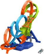 Este playset é o favorito das crianças, centrado no icônico loop Hot Wheels - o maior número de loops em um conjunto de ação! Seu veículo não apenas correrá por 4 loops, mas também haverá 3 zonas de colisão épicas! Fácil de guardar para que você possa reconstruir facilmente seu playset e brincar sem limites. Inclui estacionamento para 5 veiculos.