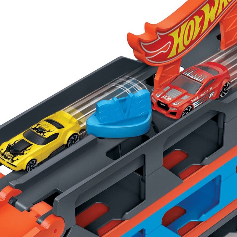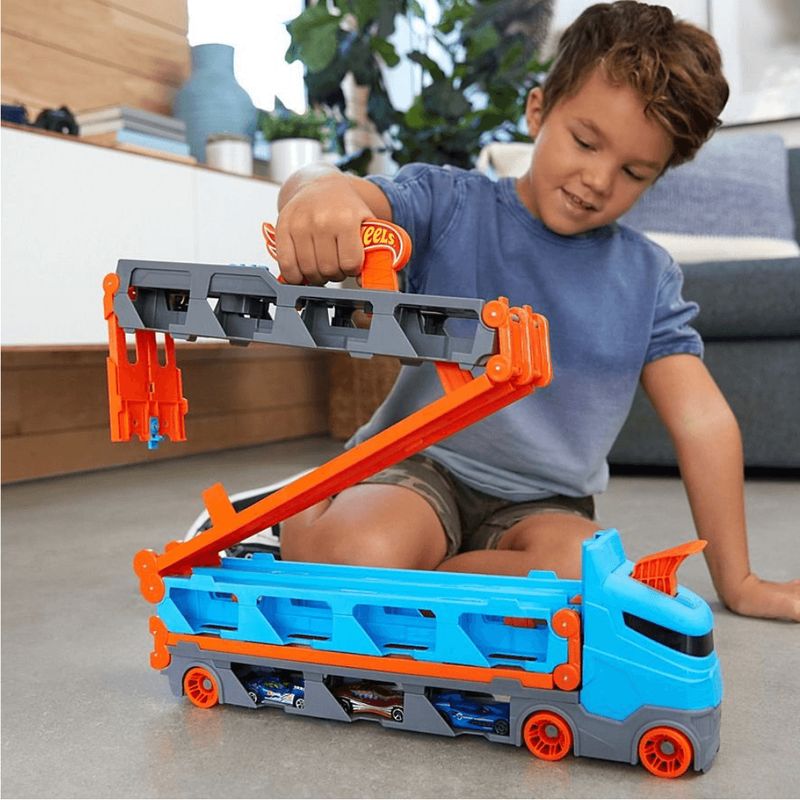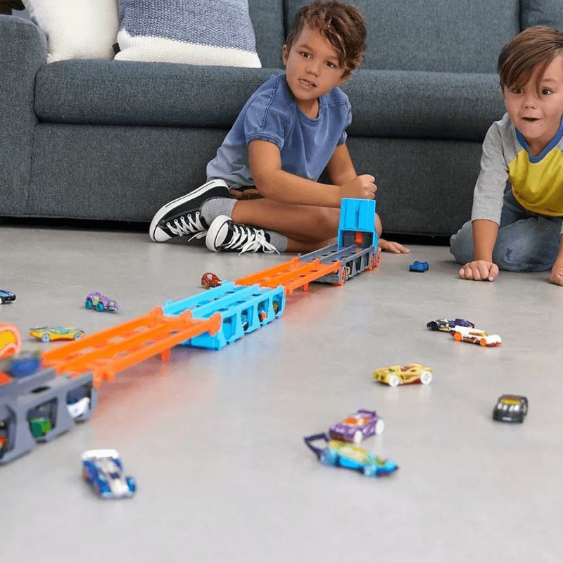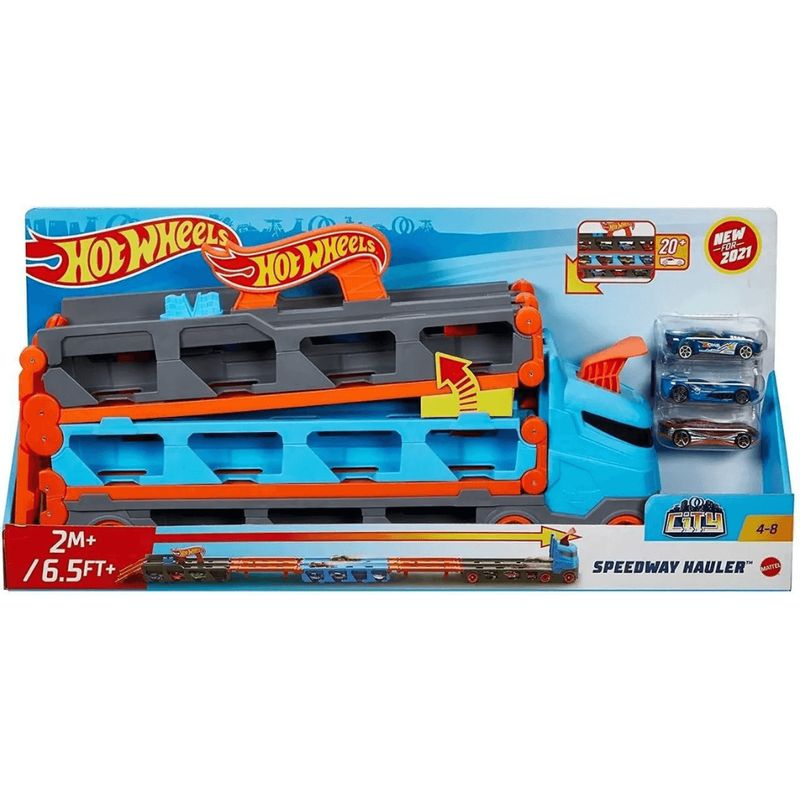 Muito mais que um caminhão: o Speedway Hauler da Hot Wheels é uma cegonheira cheia de possibilidades! Com espaço para transportar vários carrinhos, ele leva a brincadeira a um novo nível, estimulando a organização, a imaginação e a criatividade. Ideal para crianças a partir de 4 anos, é perfeito tanto para armazenar quanto para movimentar a coleção de forma divertida e prática. Seja para montar pistas em novos lugares ou apenas levar os veículos favoritos por aí, esse caminhão transforma qualquer trajeto em uma grande aventura.