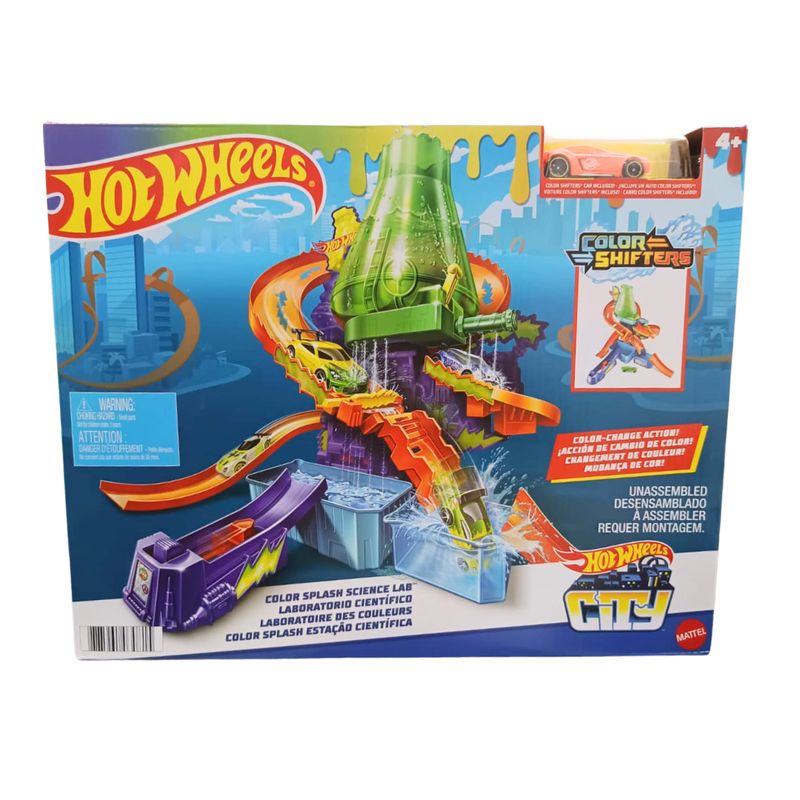 Contém: 1 Pista Hot Wheels Color Splash Estação Científica, 1 Veículo Escala 1:64;