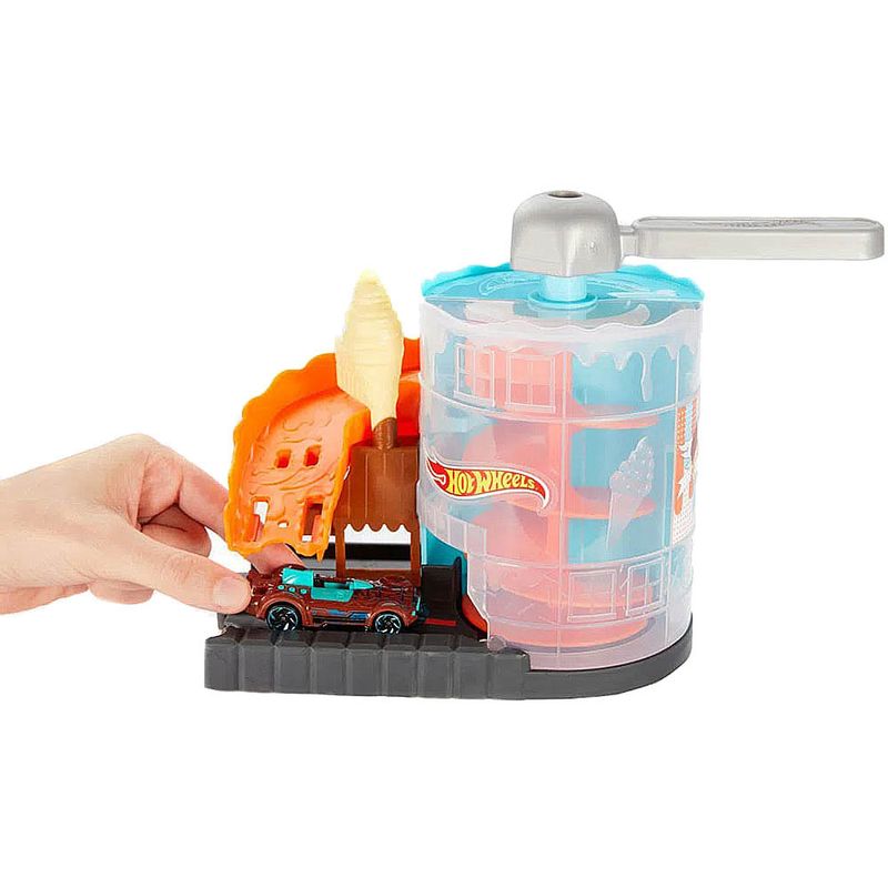 Muito detalhista, esta sorveteria apresenta um interligado de pistas internas para brincar com seu carrinho e criar diversos cenários para essa aventura. Os meninos podem deslizar pela rampa superior e passar pelas pistas dentro, em que elas se movimentam para torná-la ainda mais desafiante, sendo muito divertido.