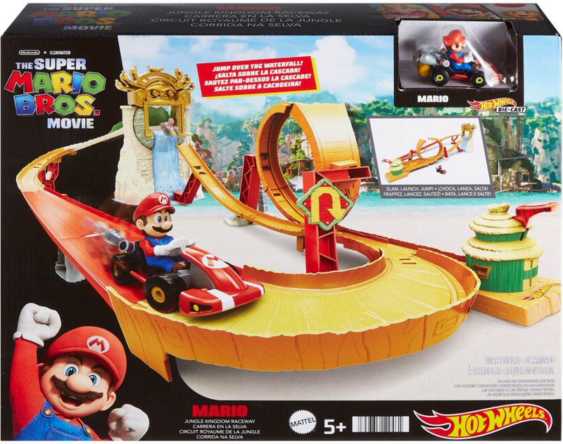 - Dê vida à aventura do filme com o conjunto e veículo Hot Wheels O Reino da Selva do filme Super Mario Bros!