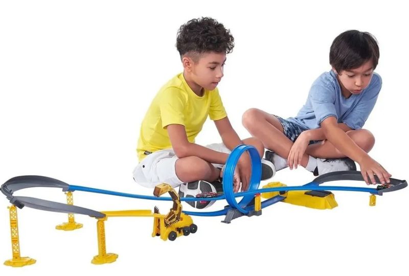 Os meninos vão passar horas se divertindo com essa irada Pista e Veículos - Metal Machines - Construction da Candide.