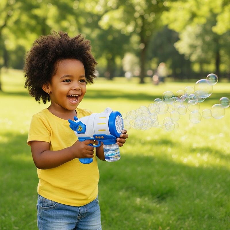 Brinquedo Infantil Lançador de Bolhas de Sabão Automático com Líquido Azul