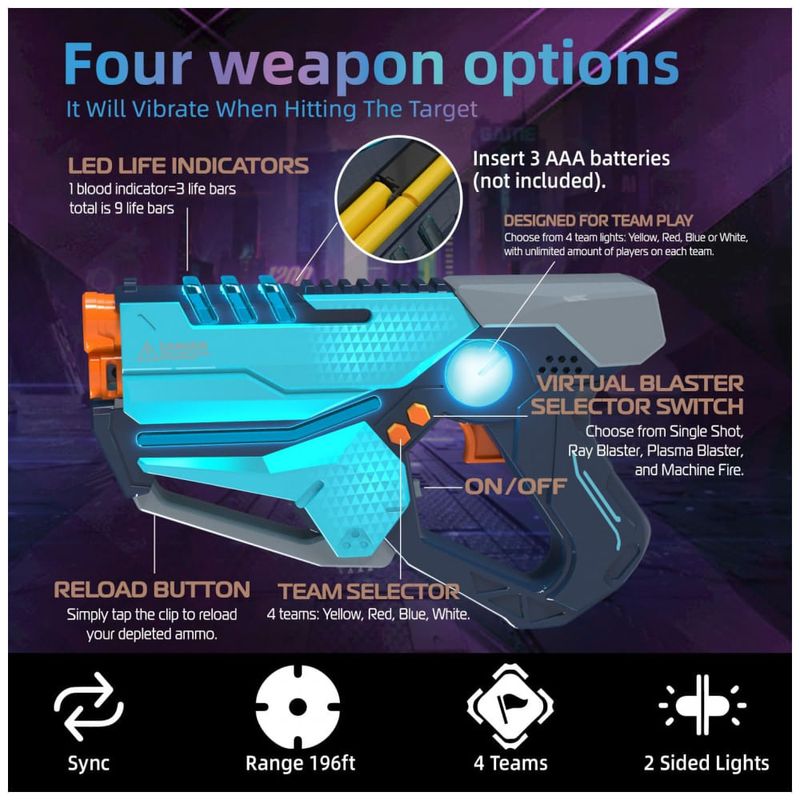Opções avançadas de jogo: Desfrute de uma experiência dinâmica de laser tag com dois modos de jogo emocionantes Gun vs. Gun Battle e Gun vs. Essas opções garantem entretenimento sem fim para adolescentes e jogadores de todas as idades.