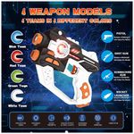 Quatro tipos de s: As s laser têm cores brilhantes na parte externa, mas também possuem quatro luzes legais de azul, vermelho, verde e branco que representam equipes diferentes, facilitando a identificação das equipes. Os sons de tiro realistas farão você entrar no jogo de tiro rapidamente. Existem 4 modos de opcionais: tiro único, espingarda, metralhadora e foguete. Diferentes s diferem no ataque e no número de balas. Atender às necessidades de tiro e tornar o jogo mais interessante e real.