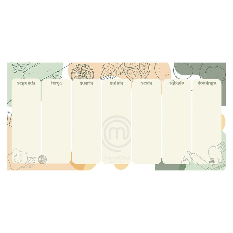 Organize as refeições da sua semana com estilo e praticidade com o Planner Semanal MasterChef. Com design moderno inspirado no universo culinário, ele traz páginas decoradas com espaços dedicados para planejar o cardápio de segunda a domingo e adicionar suas anotações. Perfeito para quem busca uma alimentação mais organizada, controle das compras e variedade nas refeições, este planner é um excelente para o planejamento alimentar da família ou mesmo para uso profissional em cozinhas, restaurantes e nutricionistas. Especificações: - Planejamento semanal de refeições - Laminação fosca de alta durabilidade - Gramatura: 70g/m² - 80 folhas - Medida: 24,1x11,9cm