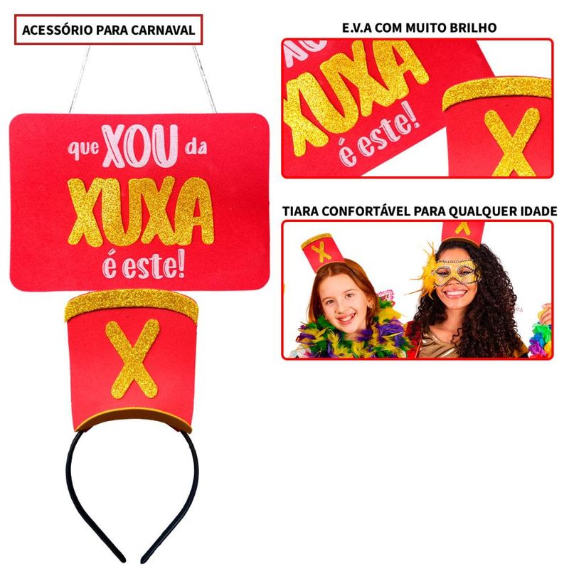 Prepare-se para a folia com o nosso vibrante Kit Carnaval, composto por uma tiara e plaquinha de carnaval feitas de material resistente de E.V.A. A tiara apresenta um design do chapéu das Paquitas e a plaquinha "Que Xou da Xuxa é Este!". Esses acessórios garantem uma experiência duradoura e descontraída nos blocos de carnaval. Brilhe com estilo, humor e energia neste carnaval!