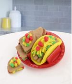 Mas não pode esquecer do molho picante, que é a característica principal de uma comida mexicana! É hora dos tacos e da diversão de brincar de massinha também!