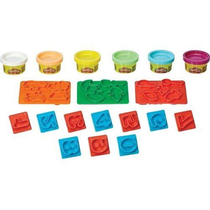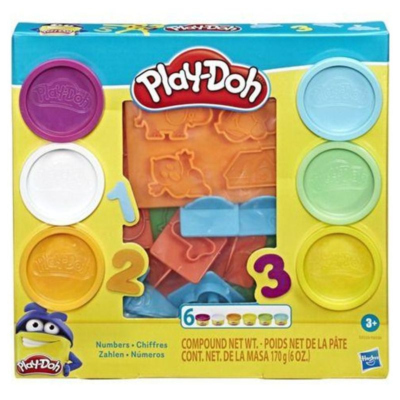 Contém - 6 Potes de Massinha Play Doh Moldes de Números
