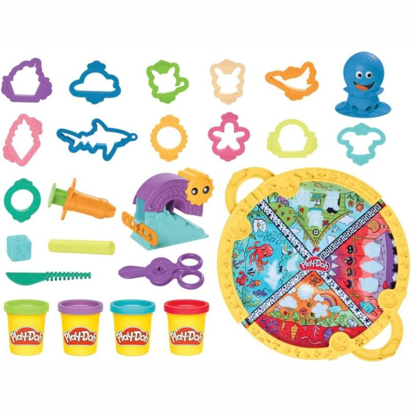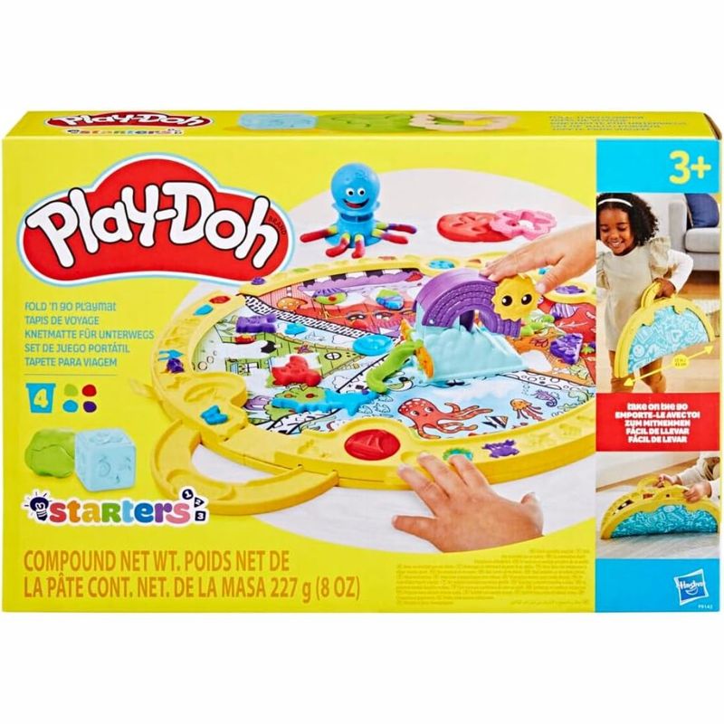 As crianças podem usar a imaginação em qualquer lugar com o Tapete de atividades Fold & Go! É um kit inicial Play-Doh perfeito que vem com um tapete portátil, 19 acessórios Play-Doh e 4 cores de massa de modelar. O tapete colorido inspira muitas atividades criativas com as ferramentas divertidas que carimbam, cortam e moldam a massa de modelar Pay-Doh em diversas maneiras. Ao brincar, as crianças podem desenvolver habilidades socio-emocionais, criatividade e aprendizagem de animais e outras formas. É um excelente brinquedo táctil e sensorial para meninos e meninas a partir dos 3 anos .