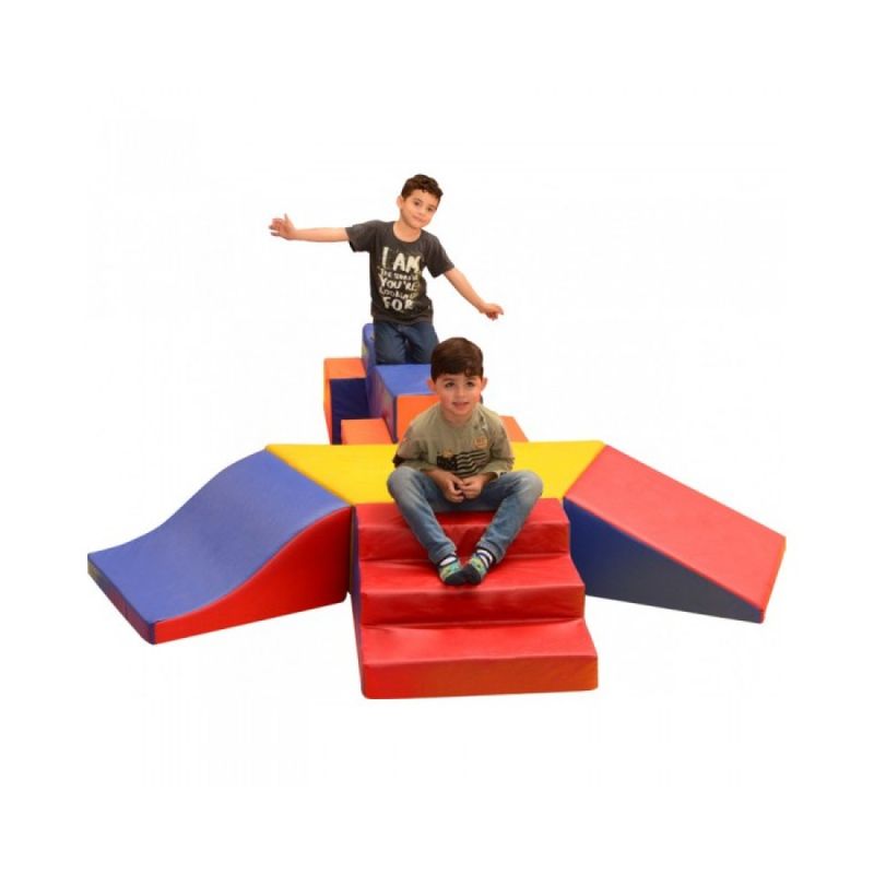 Prazo de fabricação de 10 dias uteis.Produto colorido, confeccionado em espuma de alta performance D20, revestido em Bagum Brilhante, antialérgico, impermeável, lavável e resistenteO produto é composto por 8 peças, as mesmas são fixadas em velcro.Cores variadas de acordo com as necessidades de produção.Medidas: 270 x 220 x 45 cm.Indicado para crianças de 0 a 6 anos.Peso máximo indicado em sua base é de até 25 Kg.Garantia de 3 meses contra defeitos de fabricação.