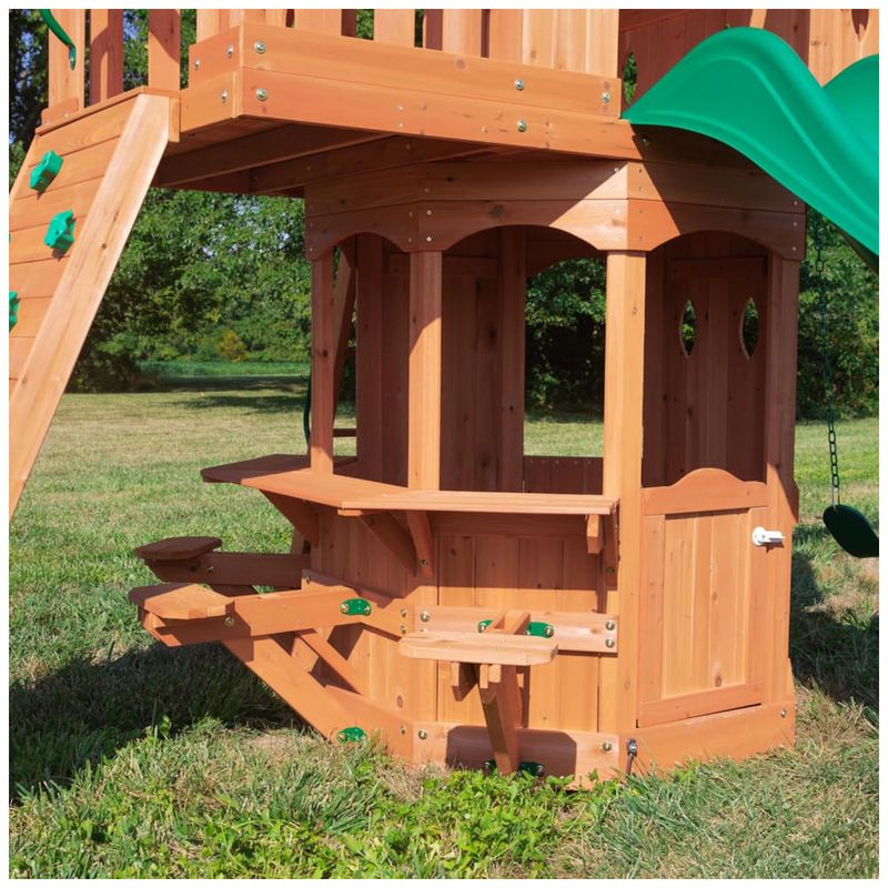 Com todo o charme de uma cabana na floresta, o Conjunto Woodland traz todos os elementos para uma verdadeira aventura de conto de fadas. Entre o clube superior com vistas panorâmicas de 360°, a ampla varanda e o forte inferior em formato de octógono, há espaço de sobra para a imaginação das crianças correr livremente.