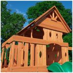 As crianças podem escalar a parede de pedra de 1,5 metros de altura ou a escada, buscando refúgio seguro de criaturas selvagens da selva. Quando estiverem prontas para descer, podem usar o escorregador para uma descida rápida e emocionante. Para mais diversão, podem balançar em um balanço de cinto ou no trapézio, imitando a sensação de voar de copa em copa como se estivessem em cipós. E para completar a brincadeira, a lanchonete abaixo é o local perfeito para servir mingau de mentira para três ursinhos.
