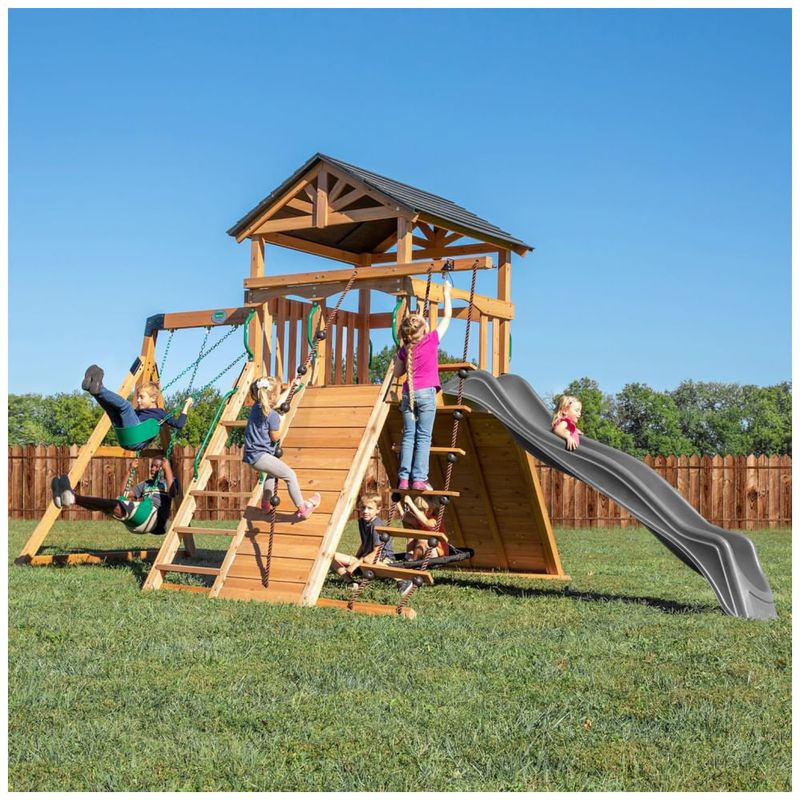 Transforme o seu quintal em um verdadeiro parque de aventuras com o conjunto de madeira Endeavor da Backyard Discovery. Projetado para proporcionar horas de diversão, este conjunto oferece uma experiência única de brincadeiras, desafiando as crianças a explorar e se divertir com segurança.