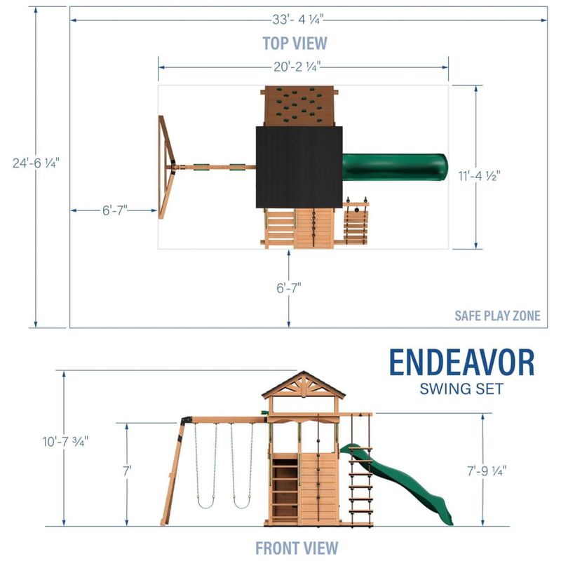 Com escadas planas de degraus largos e alças de segurança extra longas, este conjunto oferece fácil acesso para crianças de todas as idades. O Endeavor também é projetado com suportes de aço reforçados e atende aos padrões ASTM, garantindo máxima segurança durante a diversão.
