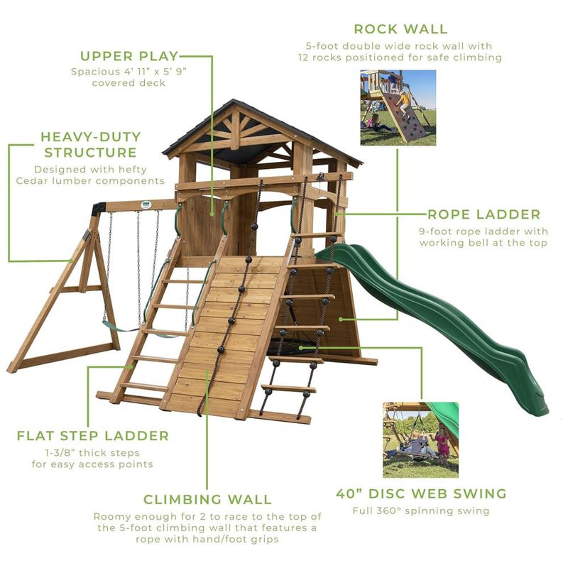 Transforme o seu quintal em um verdadeiro parque de aventuras com o conjunto de madeira Endeavor da Backyard Discovery. Projetado para proporcionar horas de diversão, este conjunto oferece uma experiência única de brincadeiras, desafiando as crianças a explorar e se divertir com segurança.