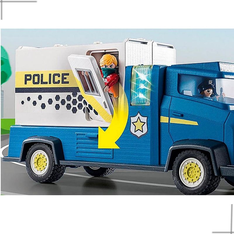 - O conjunto apresenta os heróis PLAYMOBIL D.O.C. Ducklas e Polly Police, um grande caminhão da polícia com cela de prisão (incluindo opção de fuga), centro de monitoramento de operações e arma de rede.